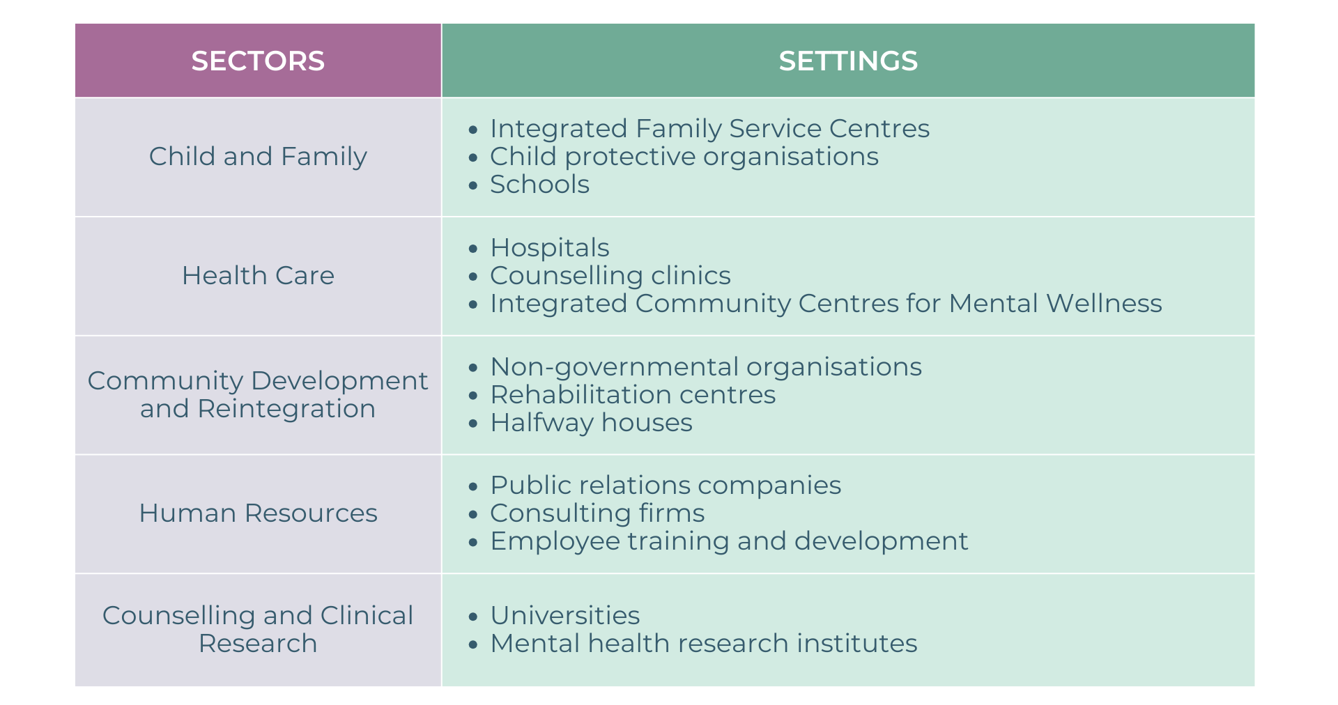 - Able to integrate knowledge, skills, and personal awareness, thereby enabling them to work in a wide variety of people-oriented careers.