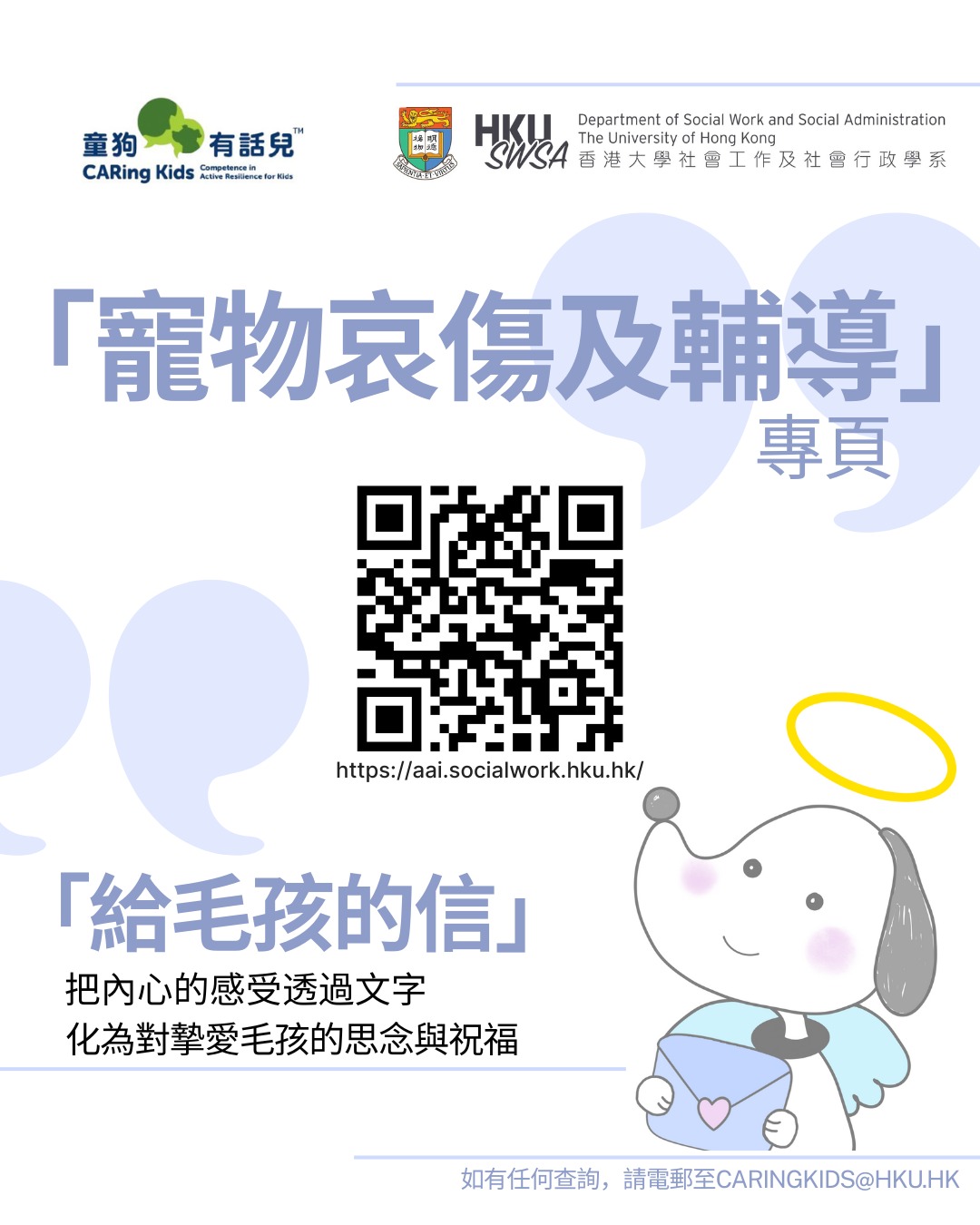 **「寵物哀傷及輔導」專頁:http://aai.socialwork.hku.hk**