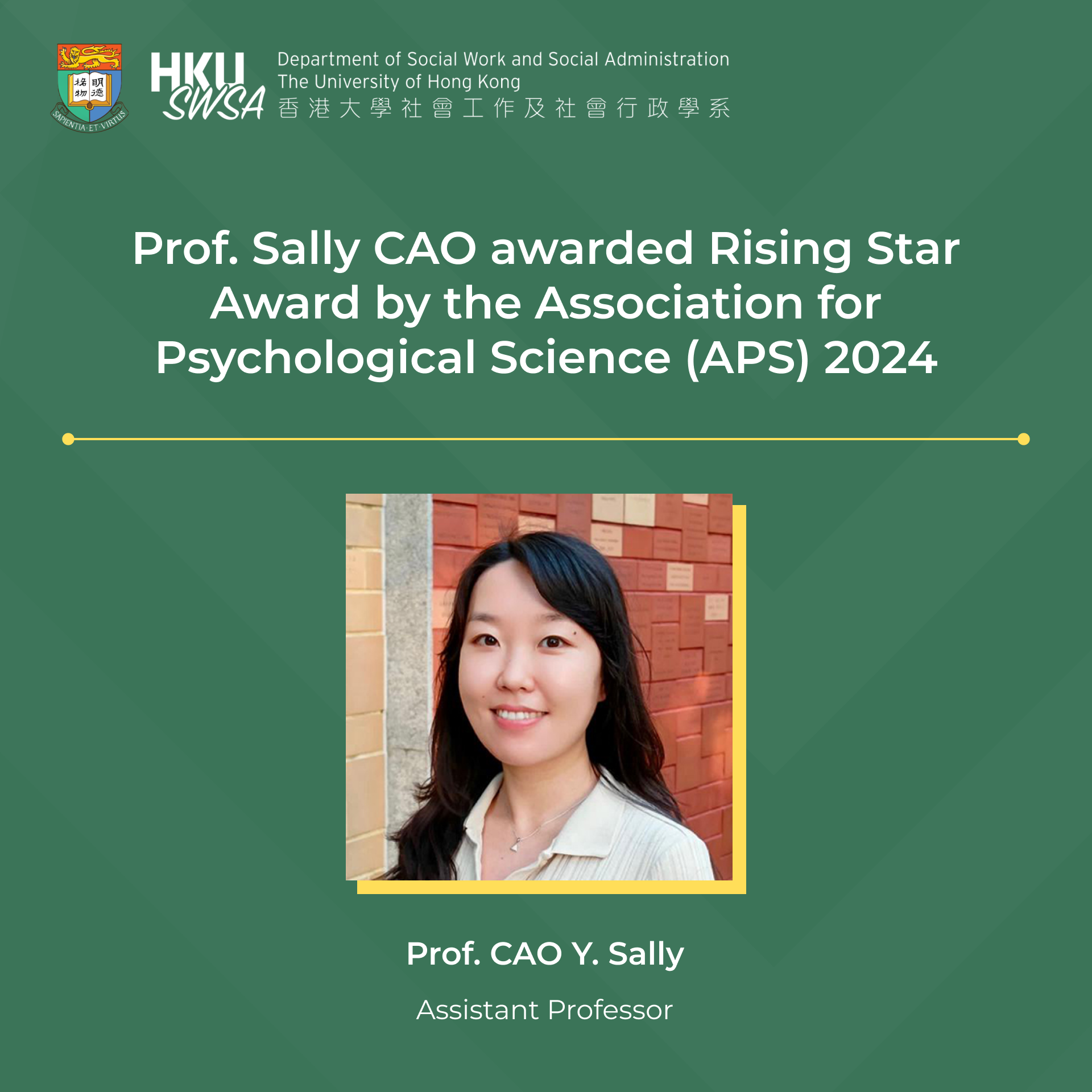 Congratulations to Prof. CAO Y. Sally on receiving the Rising Star Award by the Association for Psychological Science (APS) 2024.
